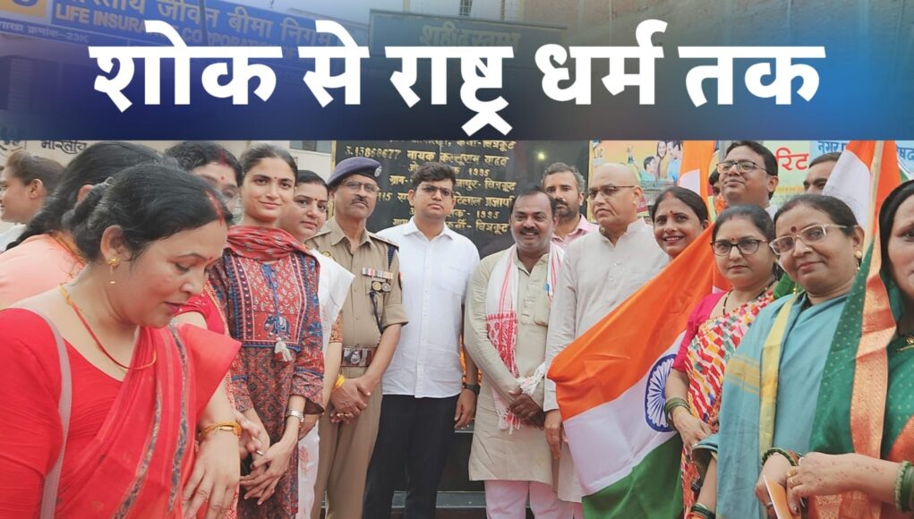 जहां नगरपालिका अध्यक्ष नरेन्द्र गुप्ता, अपने भतीजे के निधन से उपजे गहन शोक के बावजूद, तिरंगे की गरिमा और शहीदों के सम्मान हेतु उपस्थित हुए। एलआईसी तिराहे पर स्थित शहीद स्मारक इस क्षण का मौन गवाह रहा, और तस्वीर में डीएम, एसपी व अन्य नेताओं के साथ उनकी मौजूदगी ने यह स्पष्ट कर दिया कि राष्ट्रभक्ति के आगे निजी दुःख भी गौण हो सकते हैं।
